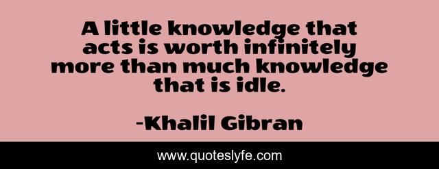 This page presents the quote "A little knowledge that acts is worth infinitely more than much knowledge that is idle.". Author of this quote is Khalil Gibran. This quote is about idle, little, wisdom,.