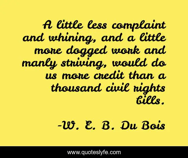 "W. E. B. Du Bois Quotes." Quoteslyfe.com, 2025. Fri. 05 Dec. 2025. <https://www.quoteslyfe.com/quote/A-little-less-complaint-and-whining-and-291211>.