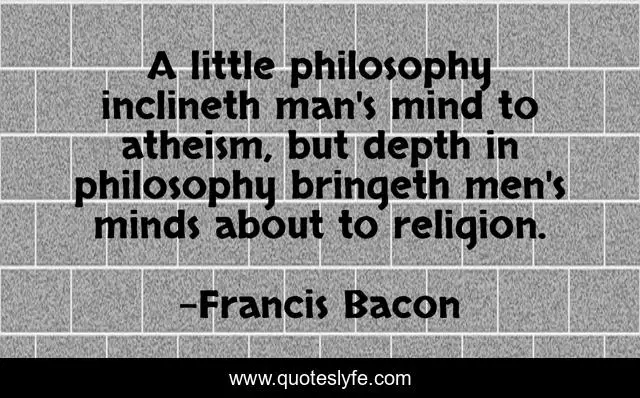 This page presents the quote "A little philosophy inclineth man's mind to atheism, but depth in philosophy bringeth men's minds about to religion.". Author of this quote is Francis Bacon. This quote is about men, mind, man,.