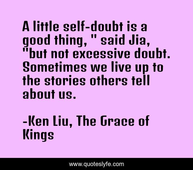 This page presents the quote "A little self-doubt is a good thing, " said Jia, "but not excessive doubt. Sometimes we live up to the stories others tell about us.". Author of this quote is Ken Liu, The Grace of Kings. This quote is about leadership, self-doubt,.
