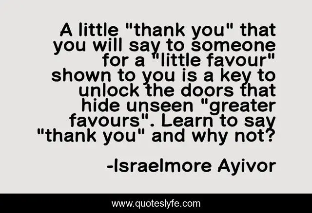 "Israelmore Ayivor Quotes." Quoteslyfe.com, 2025. Fri. 05 Dec. 2025. <https://www.quoteslyfe.com/quote/A-little-thank-you-that-you-will-129113>.