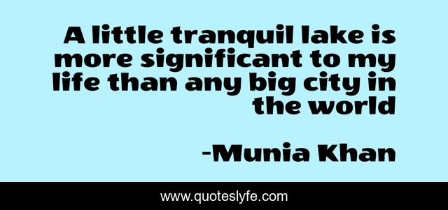 This page presents the quote "A little tranquil lake is more significant to my life than any big city in the world". Author of this quote is Munia Khan. This quote is about city, life, nature, big, peacefulness, lake, lakes, big-city, important,.