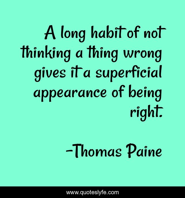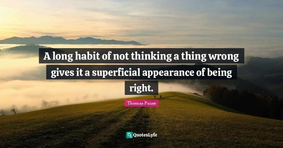 This page presents the quote "A long habit of not thinking a thing wrong gives it a superficial appearance of being right.". Author of this quote is Thomas Paine. This quote is about thinking, appearance, long,.