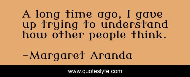 This page presents the quote "A long time ago, I gave up trying to understand how other people think.". Author of this quote is Margaret Aranda. This quote is about author, dr-margaret-aranda, people,.