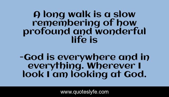 "God is everywhere and in everything. Wherever I look I am looking at God. Quotes." Quoteslyfe.com, 2025. Fri. 05 Dec. 2025. <https://www.quoteslyfe.com/quote/A-long-walk-is-a-slow-remembering-20277>.