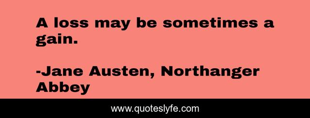 "Jane Austen, Northanger Abbey Quotes." Quoteslyfe.com, 2025. Mon. 08 Dec. 2025. <https://www.quoteslyfe.com/quote/A-loss-may-be-sometimes-a-gain-122612>.
