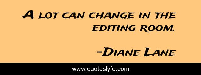 This page presents the quote "A lot can change in the editing room.". Author of this quote is Diane Lane. This quote is about editing, room, lot,.