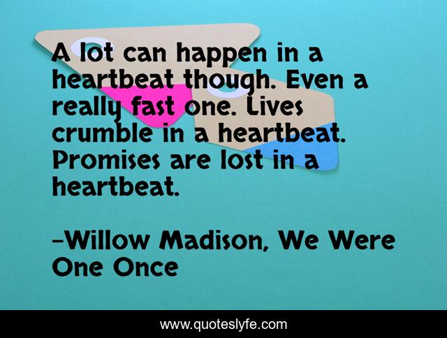"Willow Madison, We Were One Once Quotes." Quoteslyfe.com, 2025. Mon. 08 Dec. 2025. <https://www.quoteslyfe.com/quote/A-lot-can-happen-in-a-heartbeat-198168>.