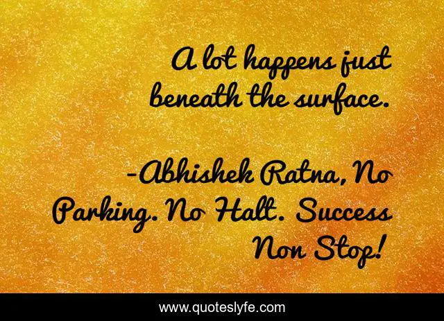 "Abhishek Ratna, No Parking. No Halt. Success Non Stop! Quotes." Quoteslyfe.com, 2025. Fri. 05 Dec. 2025. <https://www.quoteslyfe.com/quote/A-lot-happens-just-beneath-the-surface-32658>.