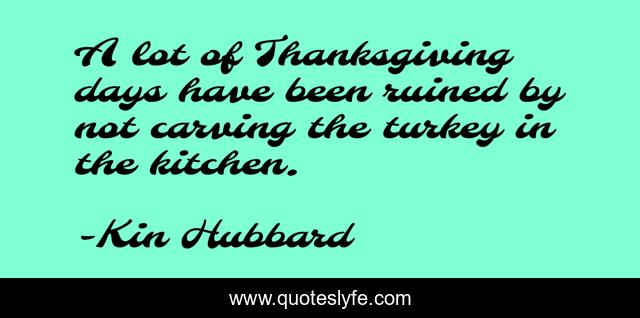 This page presents the quote "A lot of Thanksgiving days have been ruined by not carving the turkey in the kitchen.". Author of this quote is Kin Hubbard. This quote is about turkey, days, kitchen,.