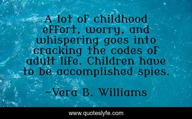 This page presents the quote "A lot of childhood effort, worry, and whispering goes into cracking the codes of adult life. Children have to be accomplished spies.". Author of this quote is Vera B. Williams. This quote is about children, growing-up,.