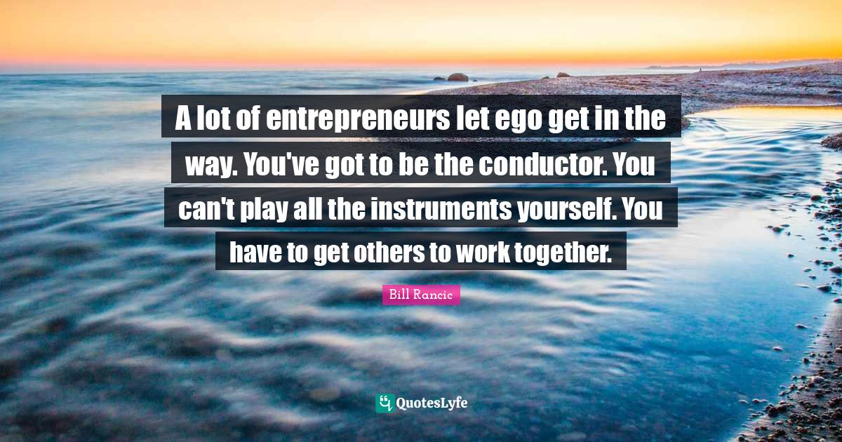 This page presents the quote "A lot of entrepreneurs let ego get in the way. You've got to be the conductor. You can't play all the instruments yourself. You have to get others to work together.". Author of this quote is Bill Rancic. This quote is about entrepreneur, way, play, together, ego, conductor, work, instruments,.