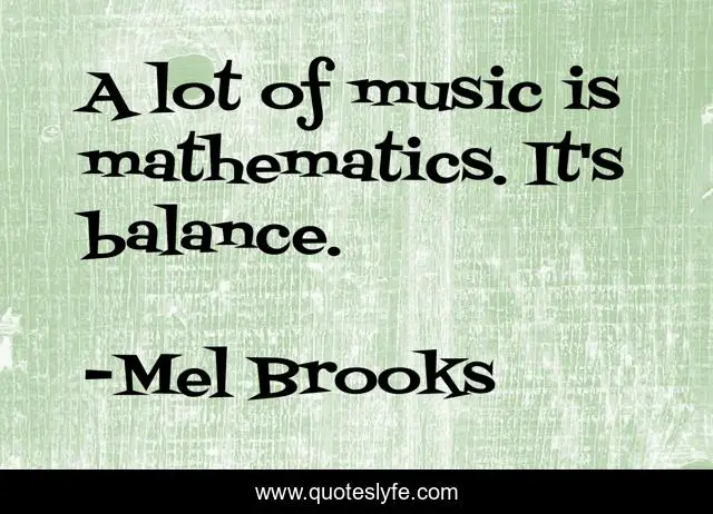 This page presents the quote "A lot of music is mathematics. It's balance.". Author of this quote is Mel Brooks. This quote is about mathematics, balance, lot,.