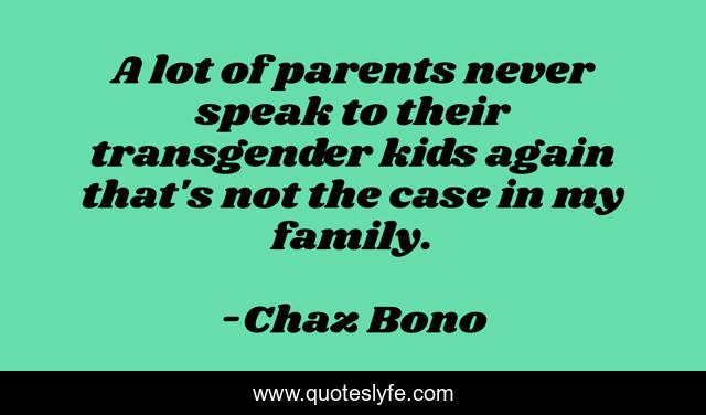 This page presents the quote "A lot of parents never speak to their transgender kids again that's not the case in my family.". Author of this quote is Chaz Bono. This quote is about kids, parents, speak,.