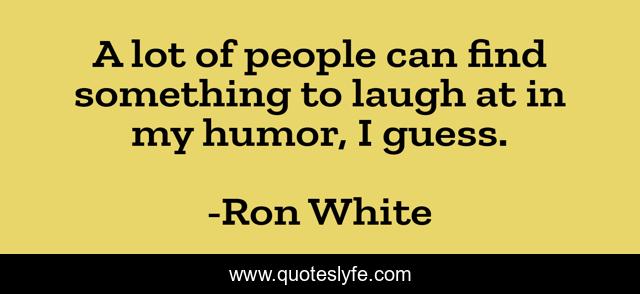 This page presents the quote "A lot of people can find something to laugh at in my humor, I guess.". Author of this quote is Ron White. This quote is about find, laugh, people,.