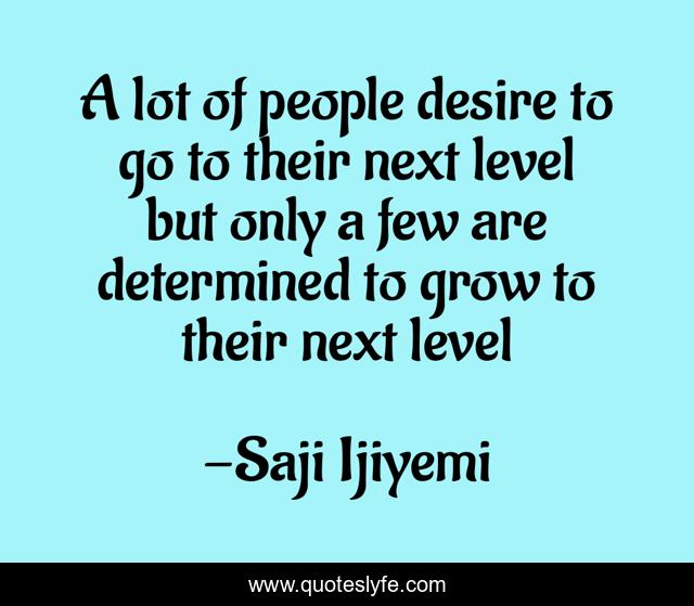 This page presents the quote "A lot of people desire to go to their next level but only a few are determined to grow to their next level". Author of this quote is Saji Ijiyemi. This quote is about success, personal-growth, comfort-zone, priorities, goals, growth-life, personal-development, self-improvement,.