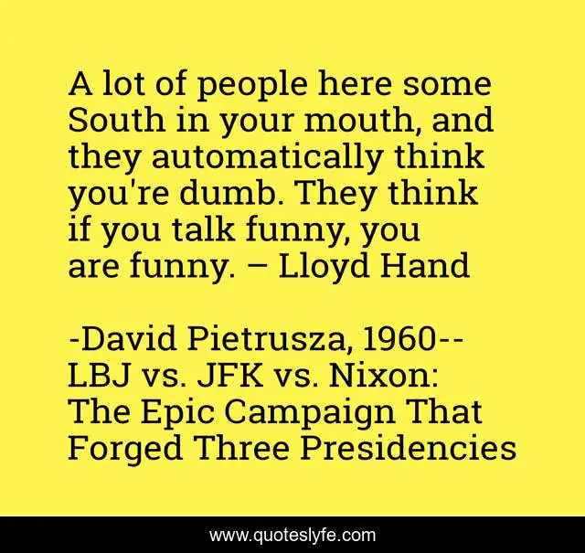 "David Pietrusza, 1960--LBJ vs. JFK vs. Nixon: The Epic Campaign That Forged Three Presidencies Quotes." Quoteslyfe.com, 2025. Mon. 08 Dec. 2025. <https://www.quoteslyfe.com/quote/A-lot-of-people-here-some-South-64772>.