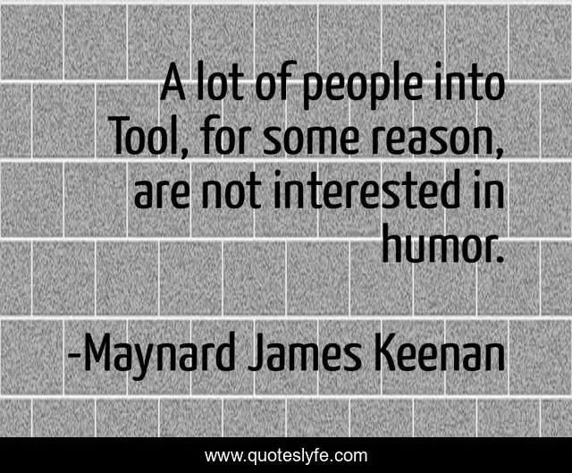 This page presents the quote "A lot of people into Tool, for some reason, are not interested in humor.". Author of this quote is Maynard James Keenan. This quote is about reason, tool, people,.