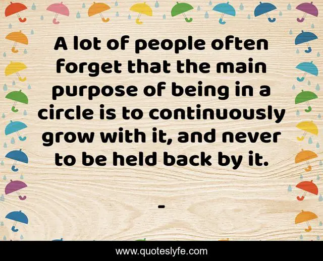 A lot of people often forget that the main purpose of being in a circle is to continuously grow with it, and never to be held back by it.