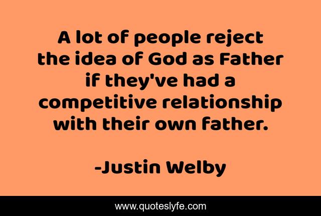 This page presents the quote "A lot of people reject the idea of God as Father if they've had a competitive relationship with their own father.". Author of this quote is Justin Welby. This quote is about god, father, people,.