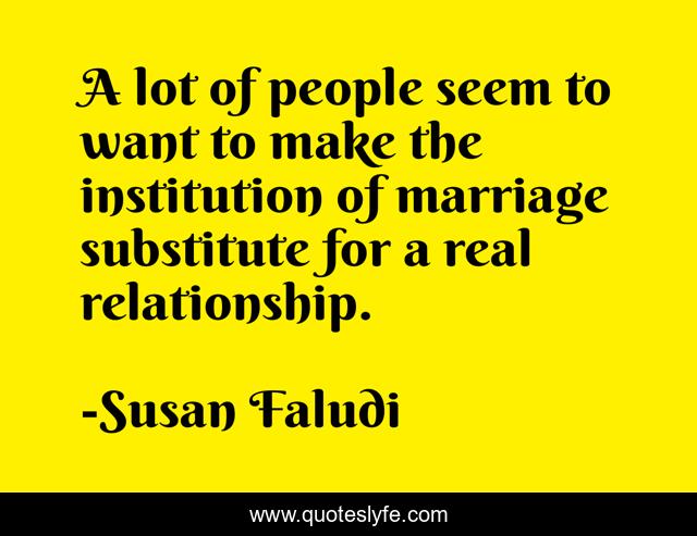 This page presents the quote "A lot of people seem to want to make the institution of marriage substitute for a real relationship.". Author of this quote is Susan Faludi. This quote is about relationship, people,.