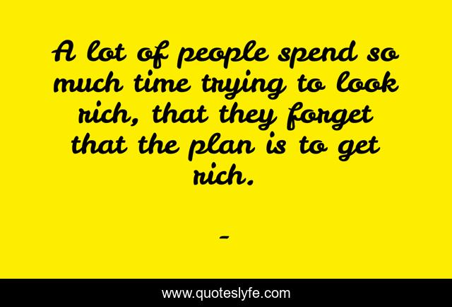 This page presents the quote "A lot of people spend so much time trying to look rich, that they forget that the plan is to get rich.". Author of this quote is . This quote is about spending-money, get-rich, edmond-mbiaka, getting-rich, successful, trying-to-look-rich, becoming-rich,.