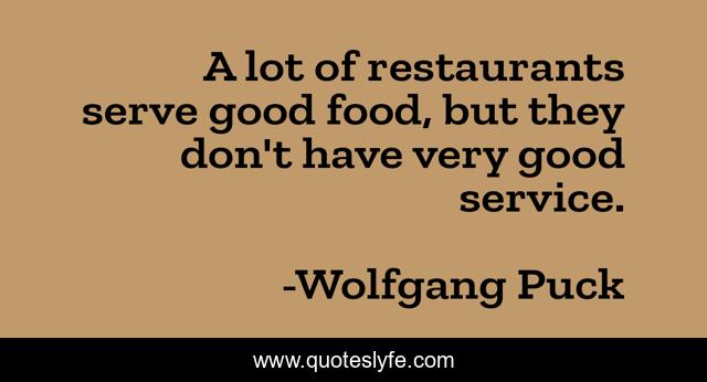 This page presents the quote "A lot of restaurants serve good food, but they don't have very good service.". Author of this quote is Wolfgang Puck. This quote is about good, good food, service,.