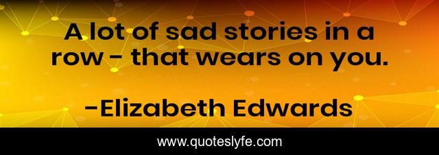This page presents the quote "A lot of sad stories in a row - that wears on you.". Author of this quote is Elizabeth Edwards. This quote is about stories, lot,.