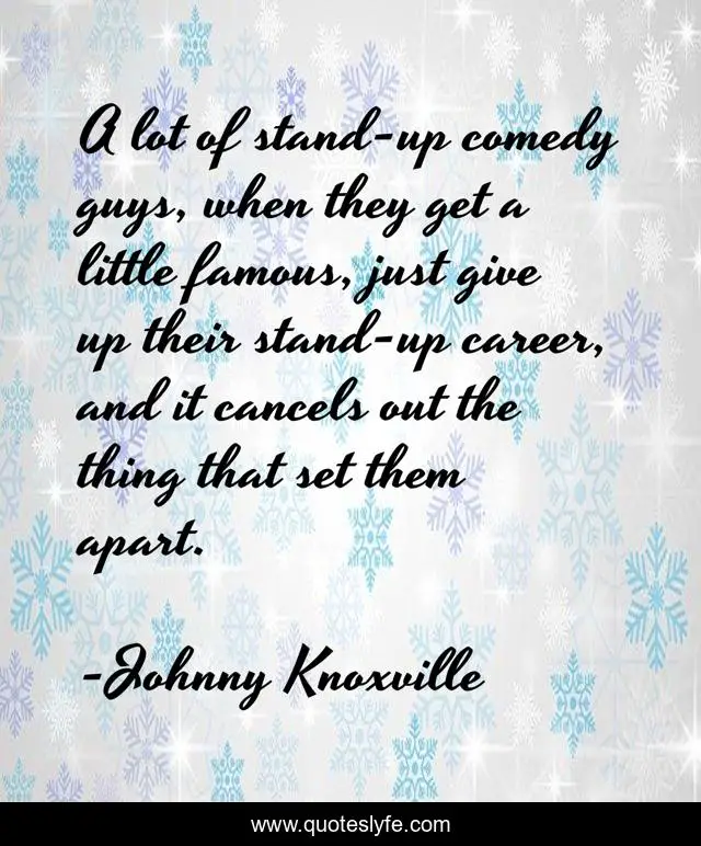 This page presents the quote "A lot of stand-up comedy guys, when they get a little famous, just give up their stand-up career, and it cancels out the thing that set them apart.". Author of this quote is Johnny Knoxville. This quote is about career, little, comedy,.