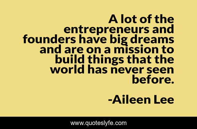 This page presents the quote "A lot of the entrepreneurs and founders have big dreams and are on a mission to build things that the world has never seen before.". Author of this quote is Aileen Lee. This quote is about world, mission, build,.
