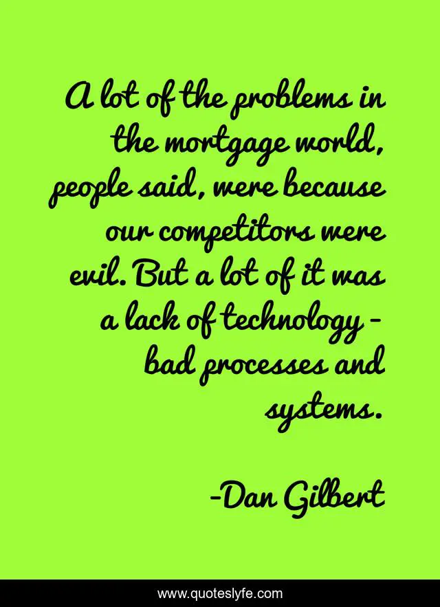 This page presents the quote "A lot of the problems in the mortgage world, people said, were because our competitors were evil. But a lot of it was a lack of technology - bad processes and systems.". Author of this quote is Dan Gilbert. This quote is about world, problems, evil,.