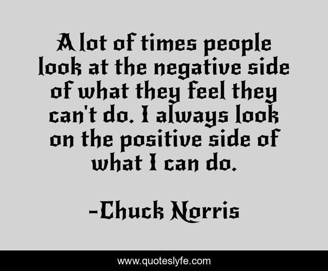 This page presents the quote "A lot of times people look at the negative side of what they feel they can't do. I always look on the positive side of what I can do.". Author of this quote is Chuck Norris. This quote is about people, look, negative,.