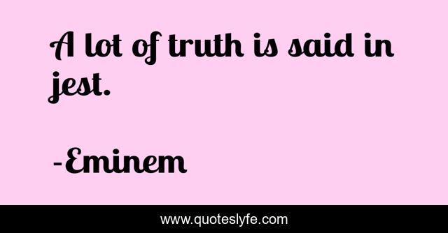 This page presents the quote "A lot of truth is said in jest.". Author of this quote is Eminem. This quote is about said, truth is, lot,.