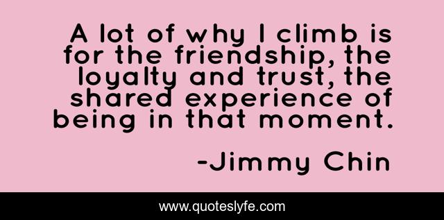 This page presents the quote "A lot of why I climb is for the friendship, the loyalty and trust, the shared experience of being in that moment.". Author of this quote is Jimmy Chin. This quote is about friendship, experience,.