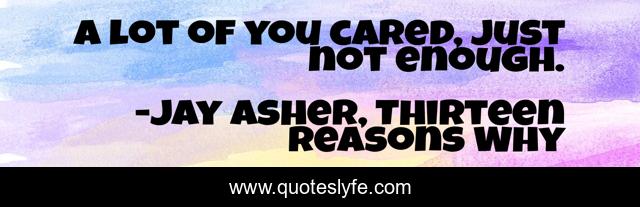 "Jay Asher, Thirteen Reasons Why Quotes." Quoteslyfe.com, 2025. Sat. 06 Dec. 2025. <https://www.quoteslyfe.com/quote/A-lot-of-you-cared-just-not-144501>.