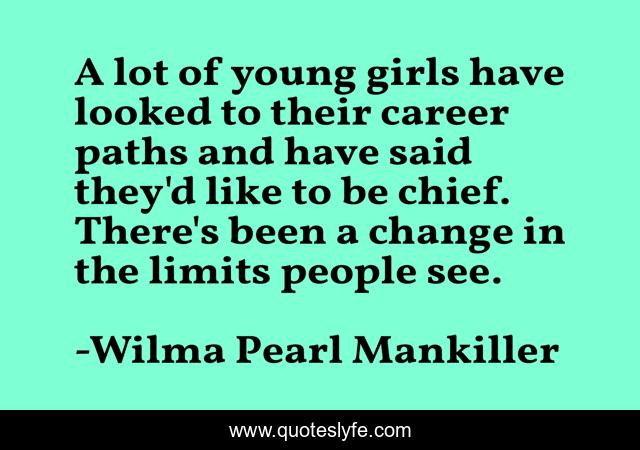 This page presents the quote "A lot of young girls have looked to their career paths and have said they'd like to be chief. There's been a change in the limits people see.". Author of this quote is Wilma Pearl Mankiller. .