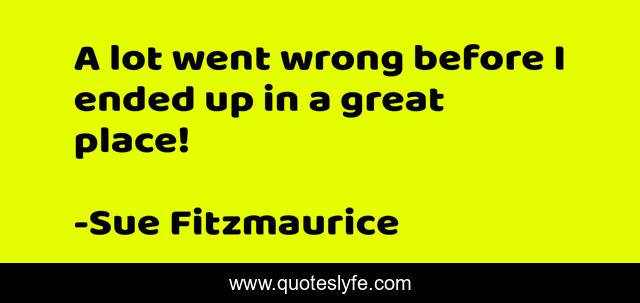 This page presents the quote "A lot went wrong before I ended up in a great place!". Author of this quote is Sue Fitzmaurice. This quote is about life, right, wrong, inspiration,.