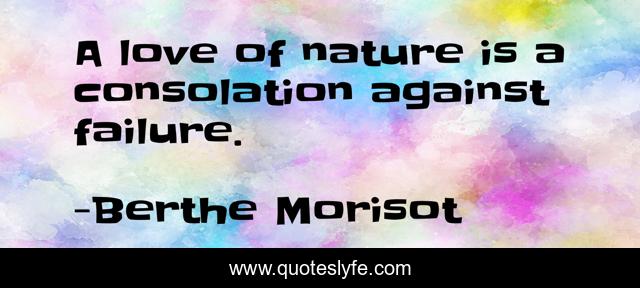 This page presents the quote "A love of nature is a consolation against failure.". Author of this quote is Berthe Morisot. This quote is about love, against, affection, nature,.
