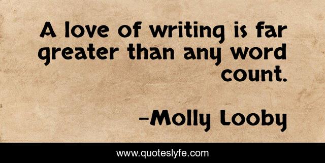 This page presents the quote "A love of writing is far greater than any word count.". Author of this quote is Molly Looby. This quote is about writing-advice, writing-inspiration, writing, molly-looby, inspirational, enthusiasm,.