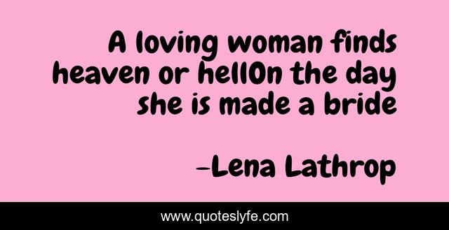 This page presents the quote "A loving woman finds heaven or hellOn the day she is made a bride". Author of this quote is Lena Lathrop. This quote is about marriage, poetry, women,.
