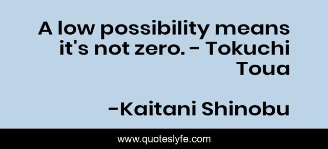 "Kaitani Shinobu Quotes." Quoteslyfe.com, 2025. Fri. 05 Dec. 2025. <https://www.quoteslyfe.com/quote/A-low-possibility-means-it-s-not-244169>.
