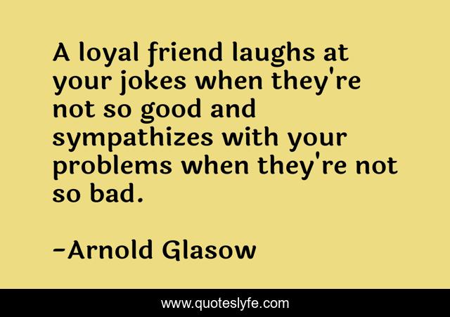 This page presents the quote "A loyal friend laughs at your jokes when they're not so good and sympathizes with your problems when they're not so bad.". Author of this quote is Arnold Glasow. .