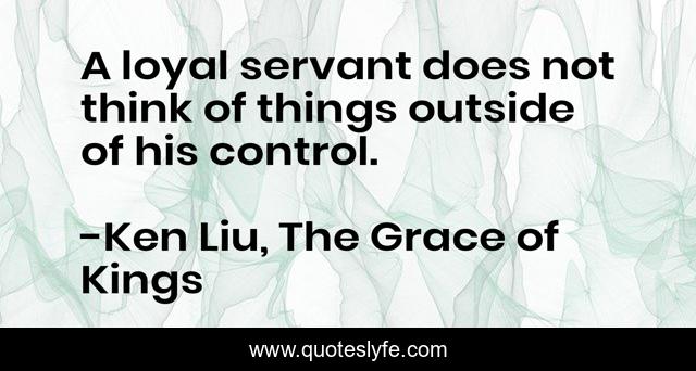 This page presents the quote "A loyal servant does not think of things outside of his control.". Author of this quote is Ken Liu, The Grace of Kings. .