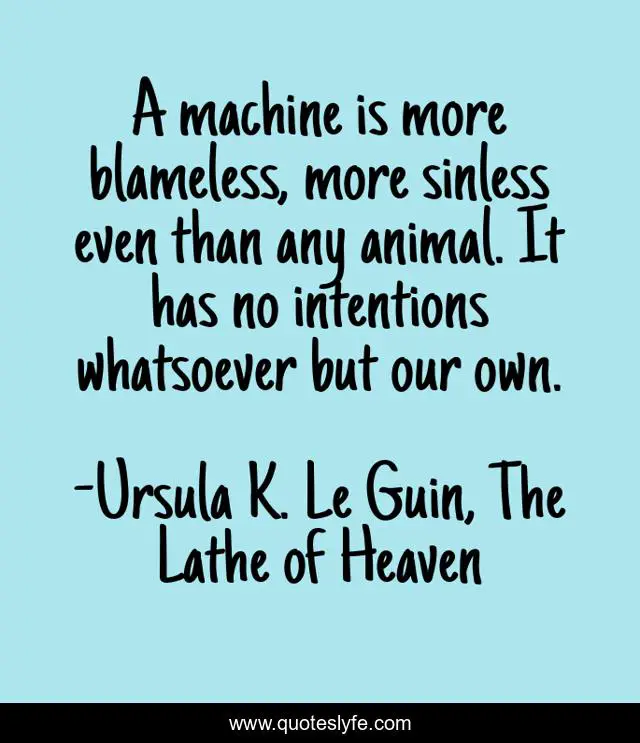 "Ursula K. Le Guin, The Lathe of Heaven Quotes." Quoteslyfe.com, 2025. Fri. 05 Dec. 2025. <https://www.quoteslyfe.com/quote/A-machine-is-more-blameless-more-sinless-177989>.