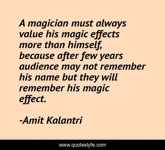 "Amit Kalantri Quotes." Quoteslyfe.com, 2025. Mon. 08 Dec. 2025. <https://www.quoteslyfe.com/quote/A-magician-must-always-value-his-magic-134040>.