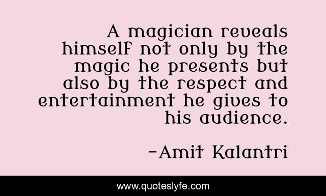 "Amit Kalantri Quotes." Quoteslyfe.com, 2025. Sun. 07 Dec. 2025. <https://www.quoteslyfe.com/quote/A-magician-reveals-himself-not-only-by-134032>.