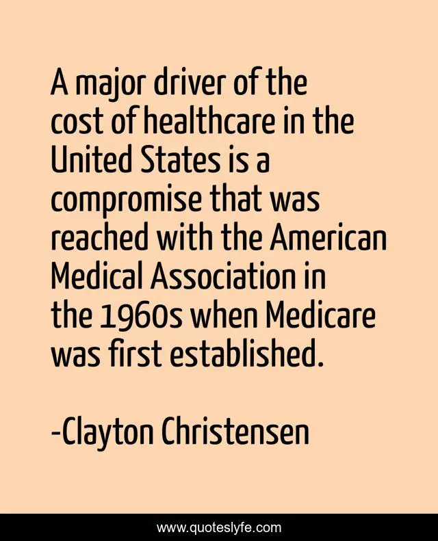 This page presents the quote "A major driver of the cost of healthcare in the United States is a compromise that was reached with the American Medical Association in the 1960s when Medicare was first established.". Author of this quote is Clayton Christensen. This quote is about american, compromise,.