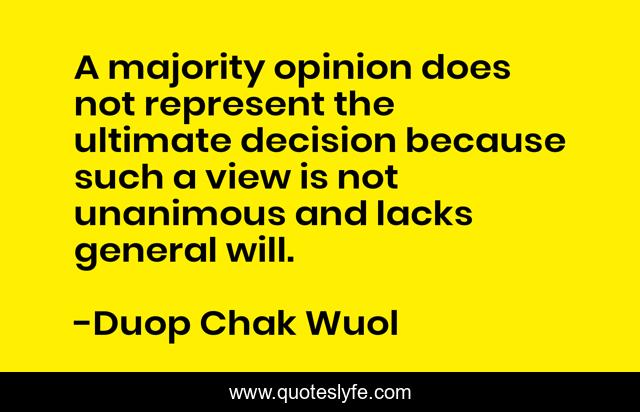 "Duop Chak Wuol Quotes." Quoteslyfe.com, 2025. Sat. 06 Dec. 2025. <https://www.quoteslyfe.com/quote/A-majority-opinion-does-not-represent-the-238437>.