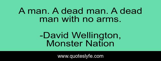 This page presents the quote "A man. A dead man. A dead man with no arms.". Author of this quote is David Wellington, Monster Nation. .