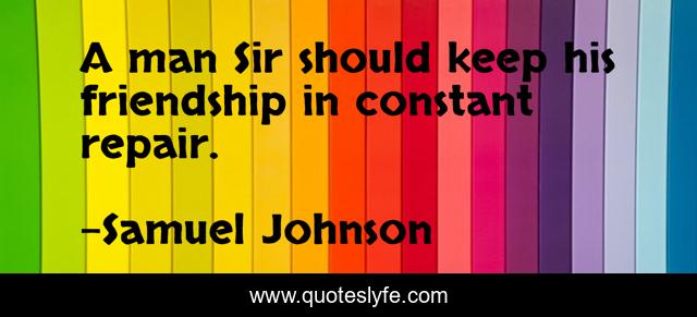 This page presents the quote "A man Sir should keep his friendship in constant repair.". Author of this quote is Samuel Johnson. This quote is about friends, friendship,.